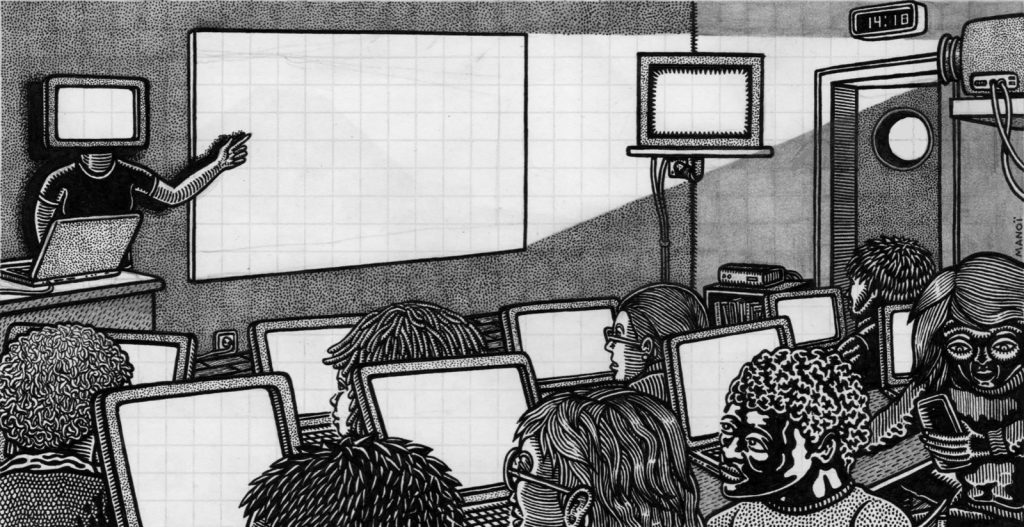 -Évidemment ! En 2015, la multinationale signe avec le ministère de l’éducation, un partenariat de mise à disposition de logiciels et de formation aux technologies Microsoft. C’est une technique commerciale désormais bien connue : mettre un pied dans la porte pour obtenir tous les marchés suivants. Une fois que la compatibilité des logiciels est établie entre les postes, difficile d’en changer. Une fois que les collégien.ne.s prennent l’habitude d’utiliser ces logiciels, ils.elles les rachètent tout au long de leur vie. Avec la complicité de l’État c’est le jackpot pour Microsoft sur plusieurs décennies. Mais vous pensez peut-être que je suis rabat-joie et que l’école numérique a quand même apporté de nouveaux outils d’apprentissage ? Voyons de plus près :