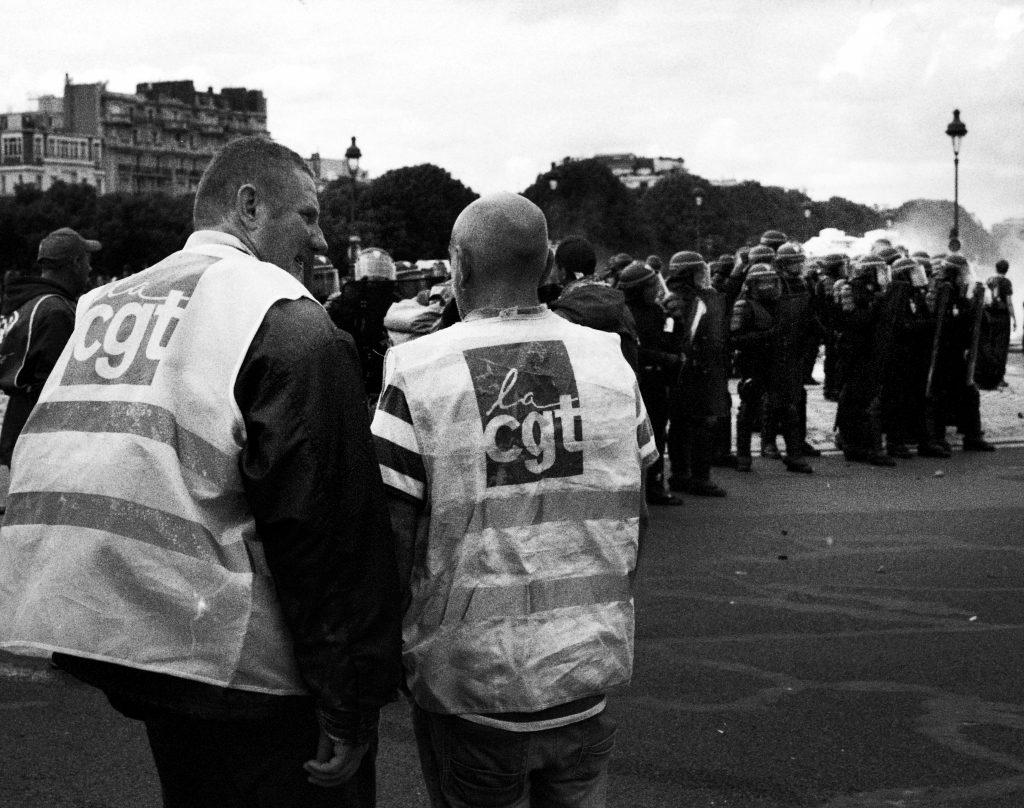 Le mouvement contre la loi du travail réunit dans la rue syndicalistes, salariés, lycéens, étudiants, intermittents et autres précaires. Une bien belle foule qui dit « non » sans pour autant employer les mêmes méthodes. Au milieu, l’incontournable CGT. Fer de lance du syndicalisme à la française, et symbole phare dans l’appréhension de l’histoire des conquêtes sociales. Une CGT qui a – une fois encore – révélé ses multiples facettes tout au long du mouvement, notamment à travers la figure de son service d’ordre. Séquestrations de patron et arrachages de chemise ne sont que des doux souvenirs quand il s’agit de réprimer tous les comportements qui échappent au scénario établi d’une manifestation. Et puis voilà qu’apparaissent les vidéos de la manifestations du 14 juin à Paris, où des membres de la CGT jettent pavés et cailloux sur les CRS. C’est à cet endroit où les positions de la CGT nous déboussolent: admiratifs devant leur force de frappe – liée au blocage notamment, déçus par leur mollesse quand il s’agit de jouer le jeu du dialogue social quitte à cautionner cette démocratie qu’État d’urgence et 49.3 vident de sa substance.